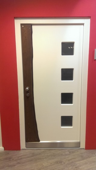 - Din links, innen und aussen in weiß mit 3 fach Automatikverriegelung, aussen mit Edelstahlknauf mit Sicherheitsabdeckung, innen Edelstahldrücker