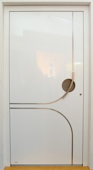Weiße Aluminium Haustür mit integriertem Edelstahl Designgriff